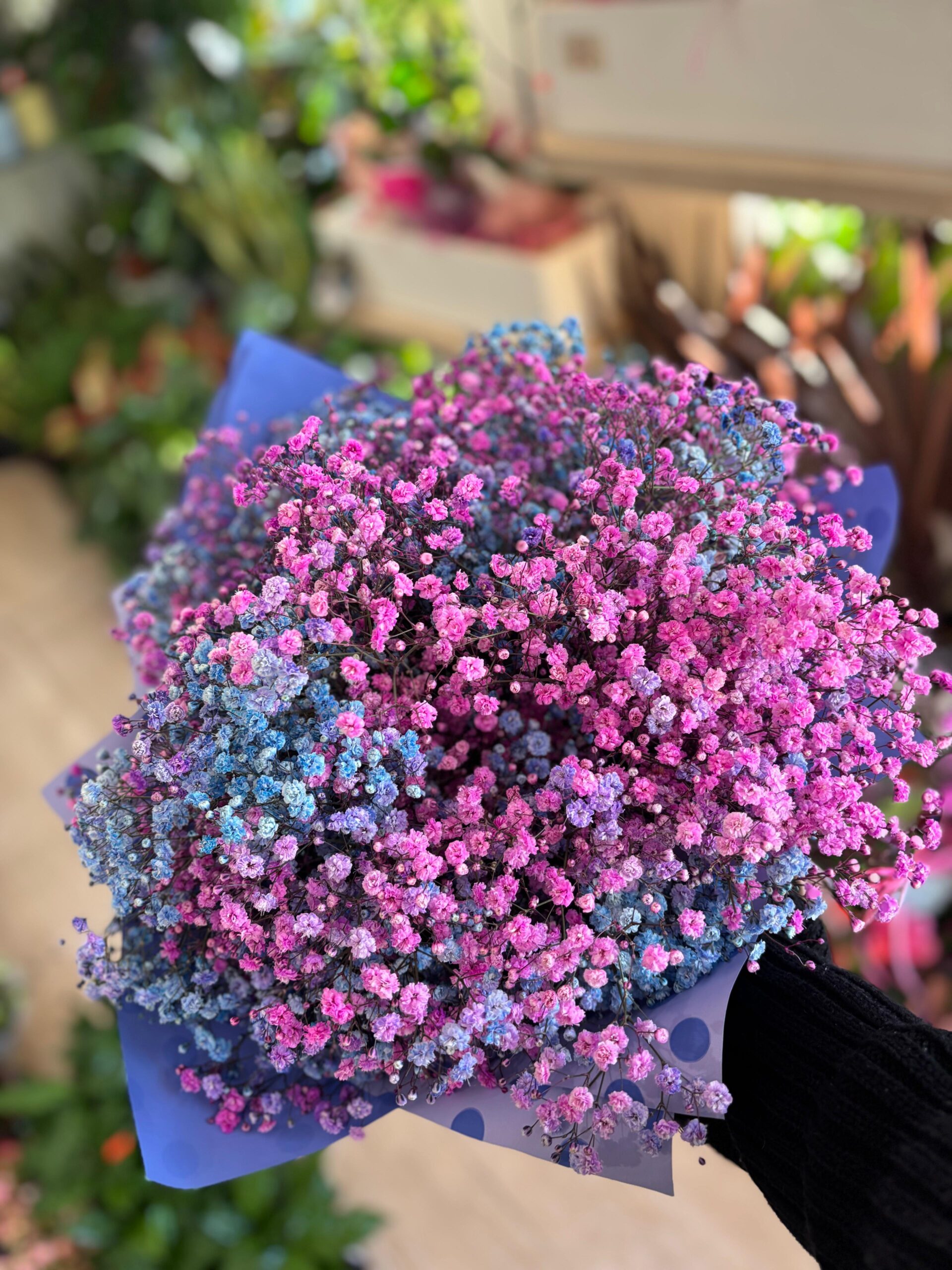 Lekki jak chmurka, puszysty jak pianka – bukiet Marshmallow to połączenie subtelnej elegancji i bajkowego uroku. Kolorowa gipsówka, niczym delikatne obłoczki, tworzy harmonijną, pastelową kompozycję, która zachwyca swoją lekkością i romantycznym charakterem.